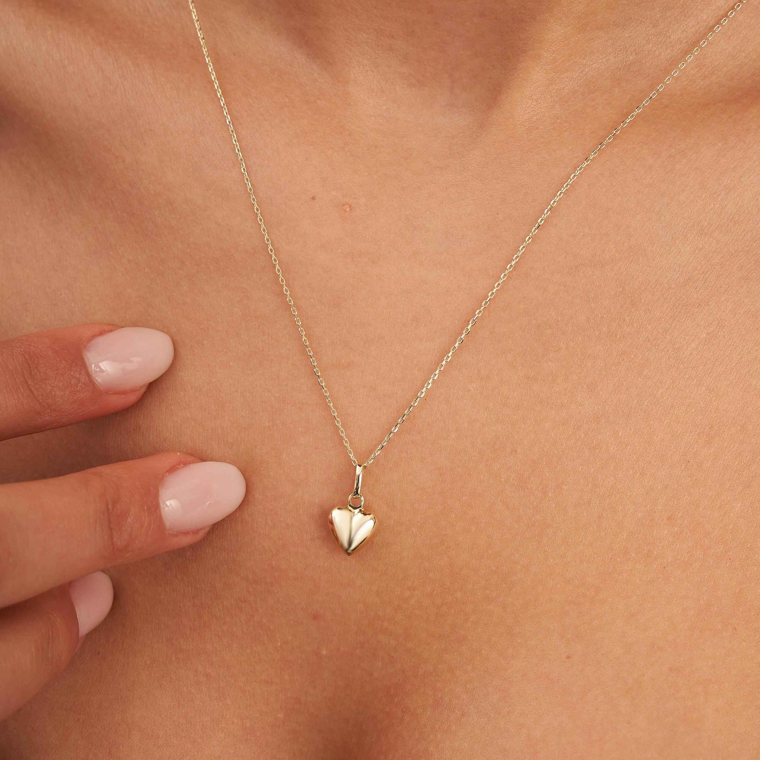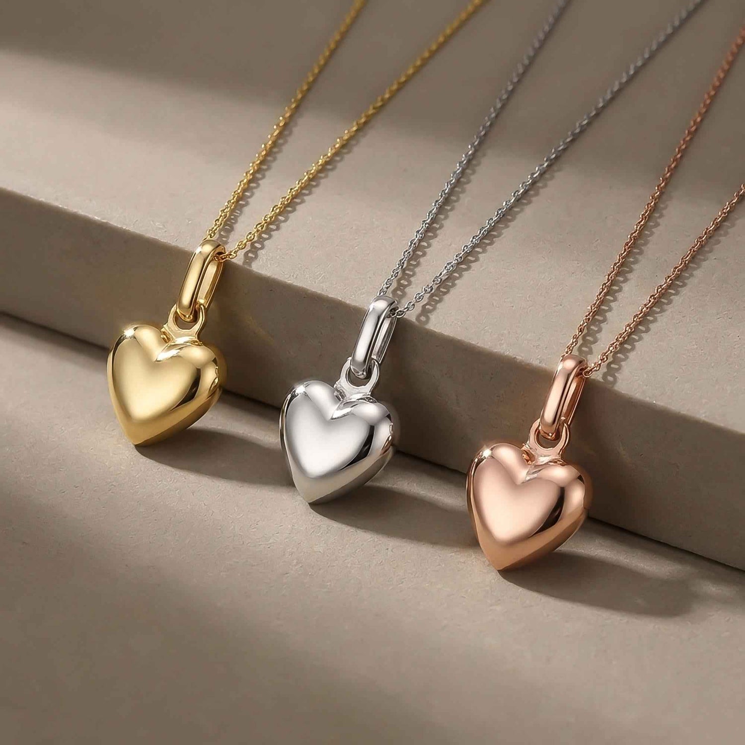 Puffed Heart Necklace 14K Solid Gold 3D Heart Timeless Love Jewelry Gift