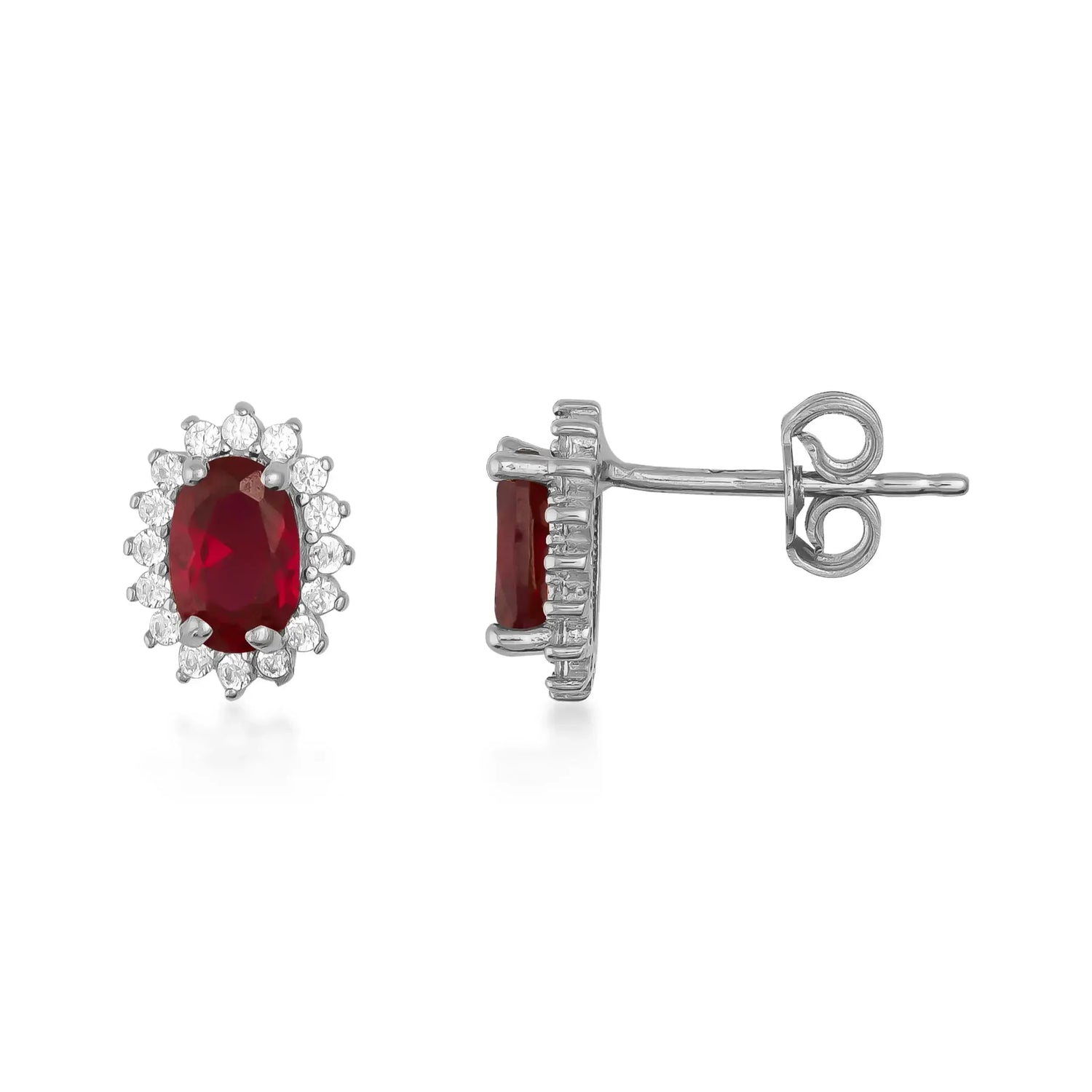 Ruby Halo Stud Earrings – July Birthstone - Lab-Created Red Gemstone & Cubic Zirconia