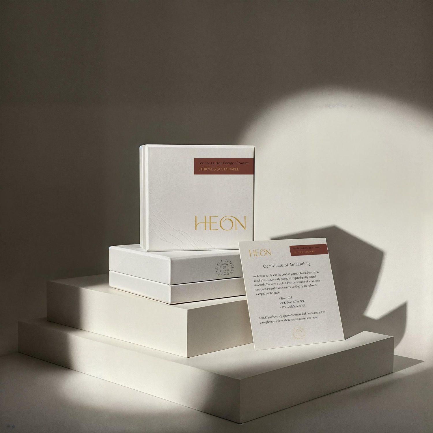 All Heon Jewelry items are crafted from 14K solid gold and shipped in premium packaging with a certificate of authenticity.