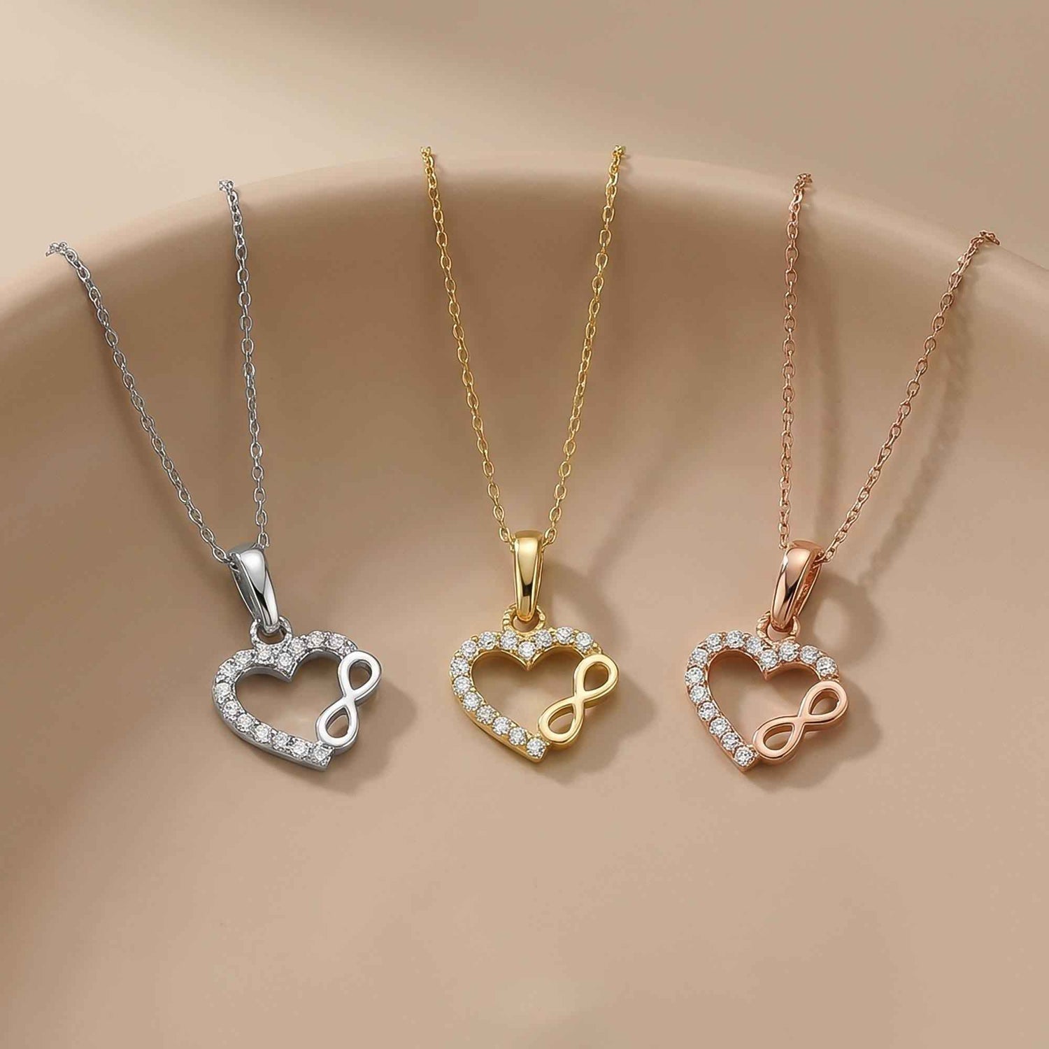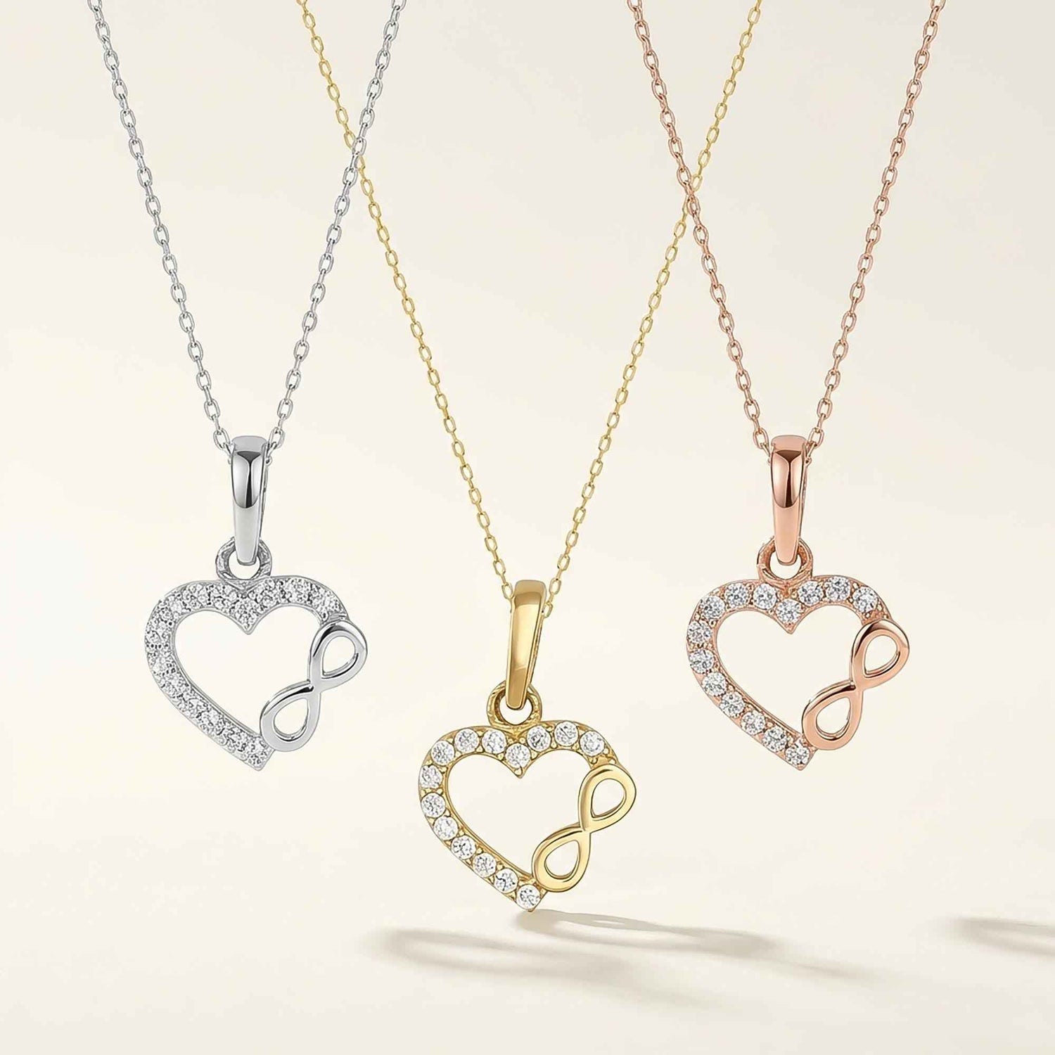 Heart Infinity Necklace 14K Solid Gold Romantic Love Jewelry Valentines Day Gift for Her