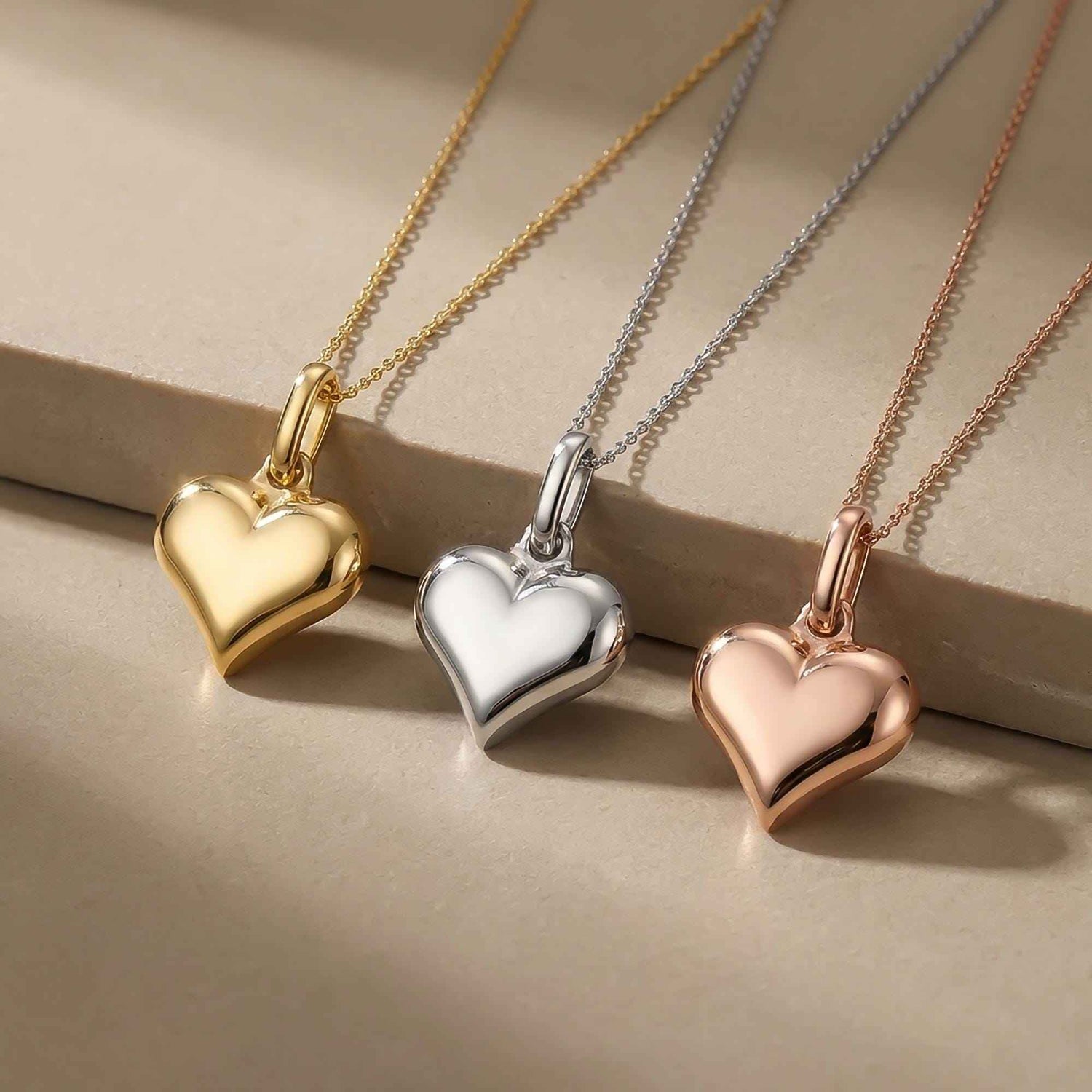 Puffed Heart Necklace 14K Solid Gold Classic 3D Heart Love Jewelry Gift